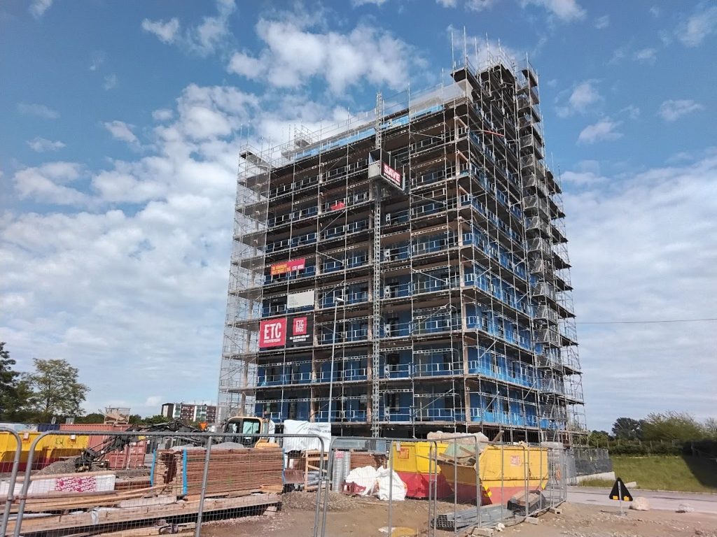 In Hyllie in Malmö, the developer ETC Bygg built its largest project ever, a 12-storey building with 65 apartments built entirely in wood and other biobased materials. There are 10 storeys of accommodation above ground floor café and retail. The top floor is storage and plant space. This unique tenement house is being built in CLT mass wood as the main structure, with EcoCocon panels forming the external envelope. The building has been designed to a passive house standard with extremely low energy consumption to provide long-term comfort and low energy bills. The goal is to create a climate-positive energy system in the building with its own energy production and storage, which means that the property does not need to be connected to the local district heating system or other sources of fossil fuels.
