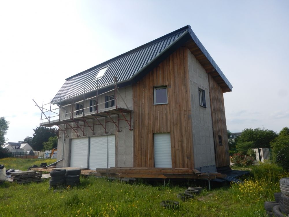 1 Passive-labelled tertiary building in Brittany insulated with straw. Agence Sével Services 150 m² of offices, restaurant and cloakroom space + 300 m² of hangar. Cost: Administrative part: 2220 euros /m², 1950 euros /m² (excluding soil constraints), Hangar part: 730 euros /m², Road part: 66500 euros /m². Fenced area : 19600 euros (excl. tax). 82 m3 of straw – 575 bales of straw – 75 bales checked and listed in the self-checking sheets (i.e. 13% of the whole lot) – 320 m² of insulated walls (walls and roof) – 1.2 m² / hour (including control) – A local supply. Farm of Kerjean / Plouzévédé at 60 kms from the building site.