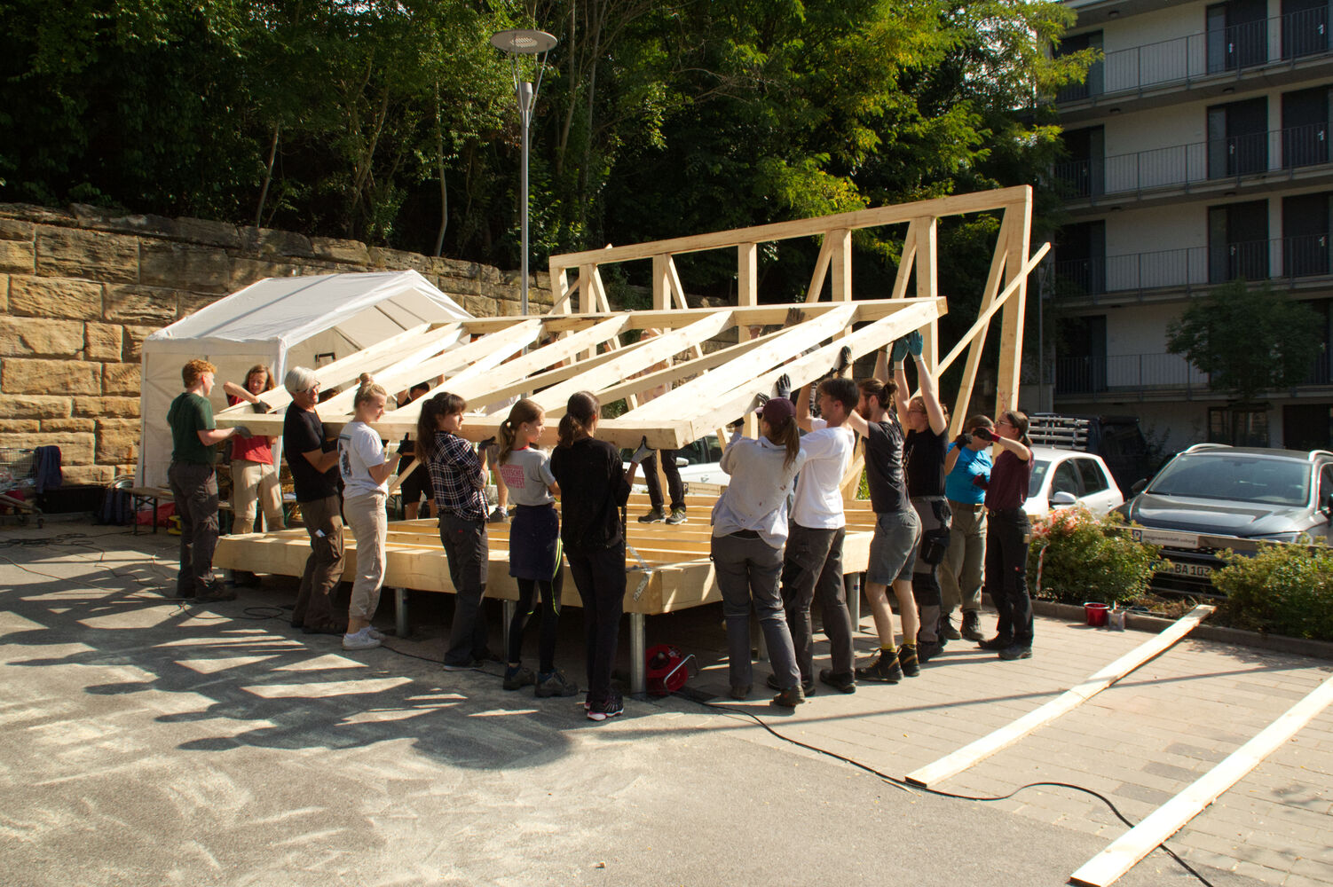 Place:Coburg Completion:2022 Construction:Wooden load bearing structure, the straw bale walls are placed inside the structure without much interruption Design:Til-Oliver Frank, Christopher Nguyen, Prof. Dr. Rainer Hirth Straw Builder:Self-construction(by architecture students of Coburg University of Applied Sciences) Carpenter:Self-construction(by architecture students of Coburg University of Applied Sciences) Visitable:Yes Press photos:Yes