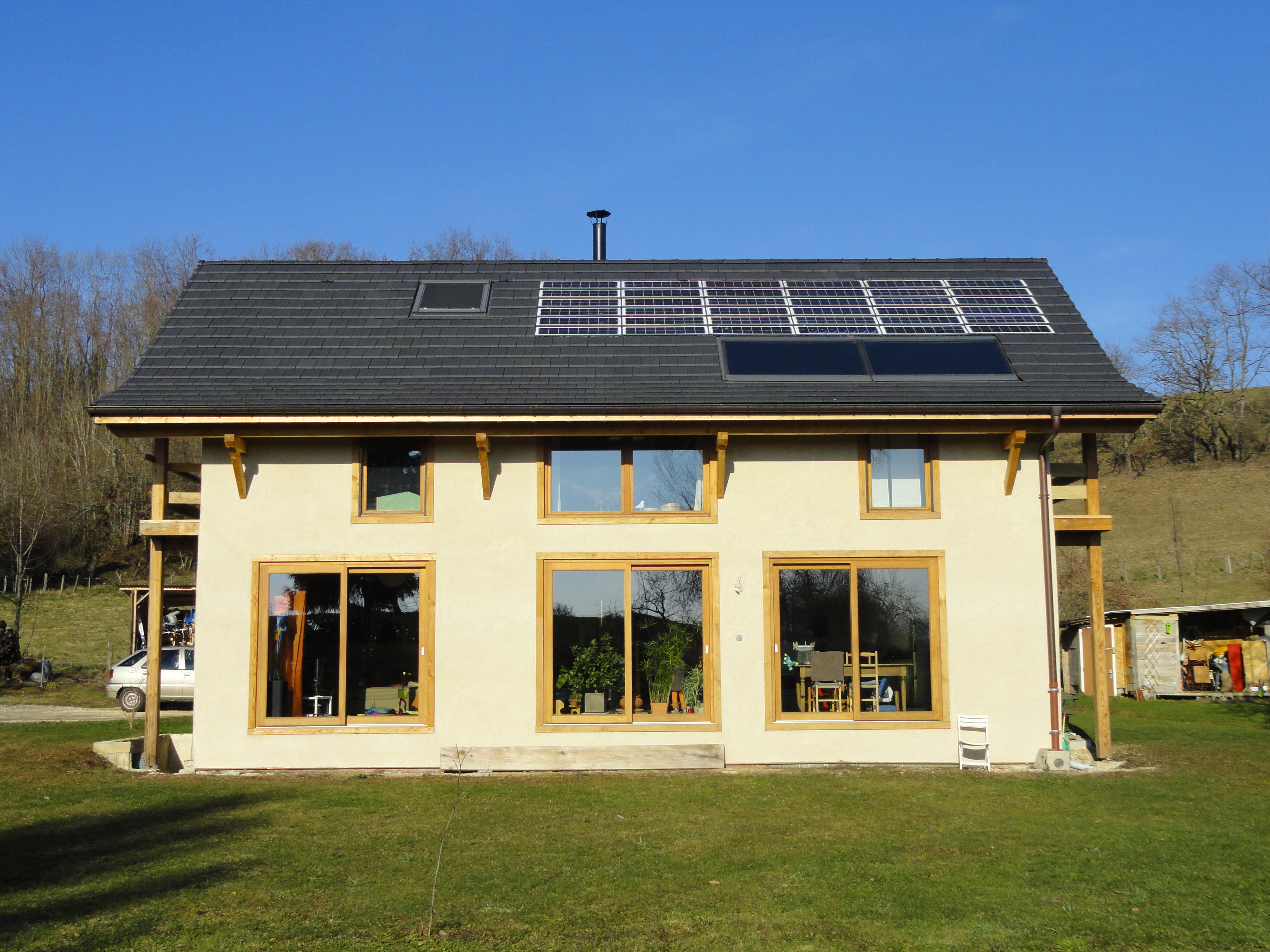 Renovation and extension of a 1978 house with a passive purpose. Thermal insulation from the outside of the existing and new volumes created, in compressed straw bales, without frame. ( process G5 Bati Nature ) The flat roof, structure in KLH is insulated by the outside in bundles laid on edge.
