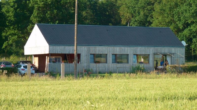 Rainwater recovery, south facing large bay window, shielded electricity, thermodynamic balloon connected to single flow to recover calories from the air, wood stove, dry toilets.