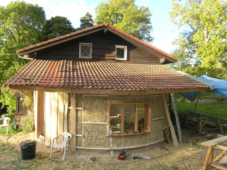 Semi-circular extension of 20 m² of a wooden chalet. Info & Credits: http://www.stephanrobert-ecoconstruction.fr/gallery/paille/merlou/24.html#prettyPhoto