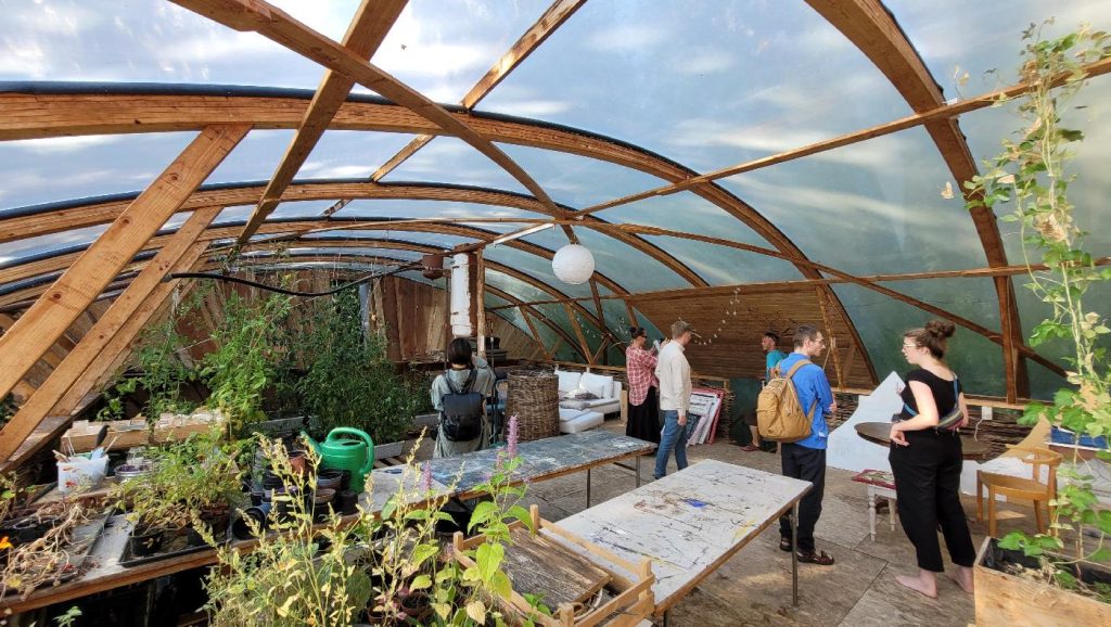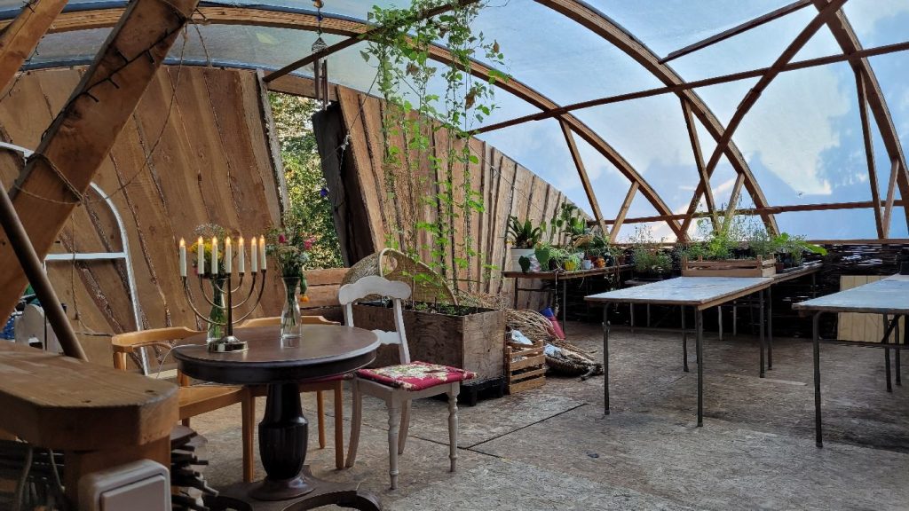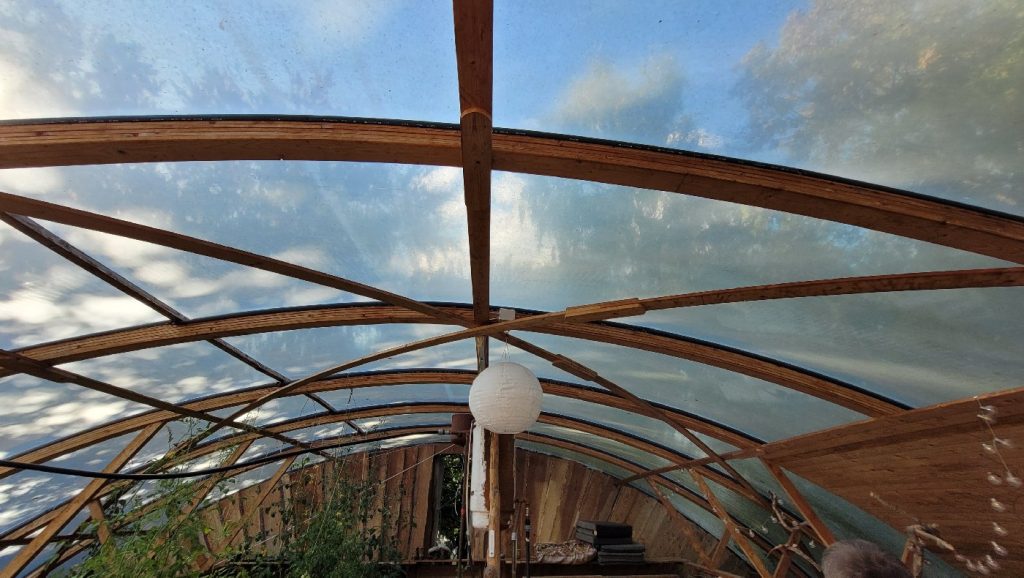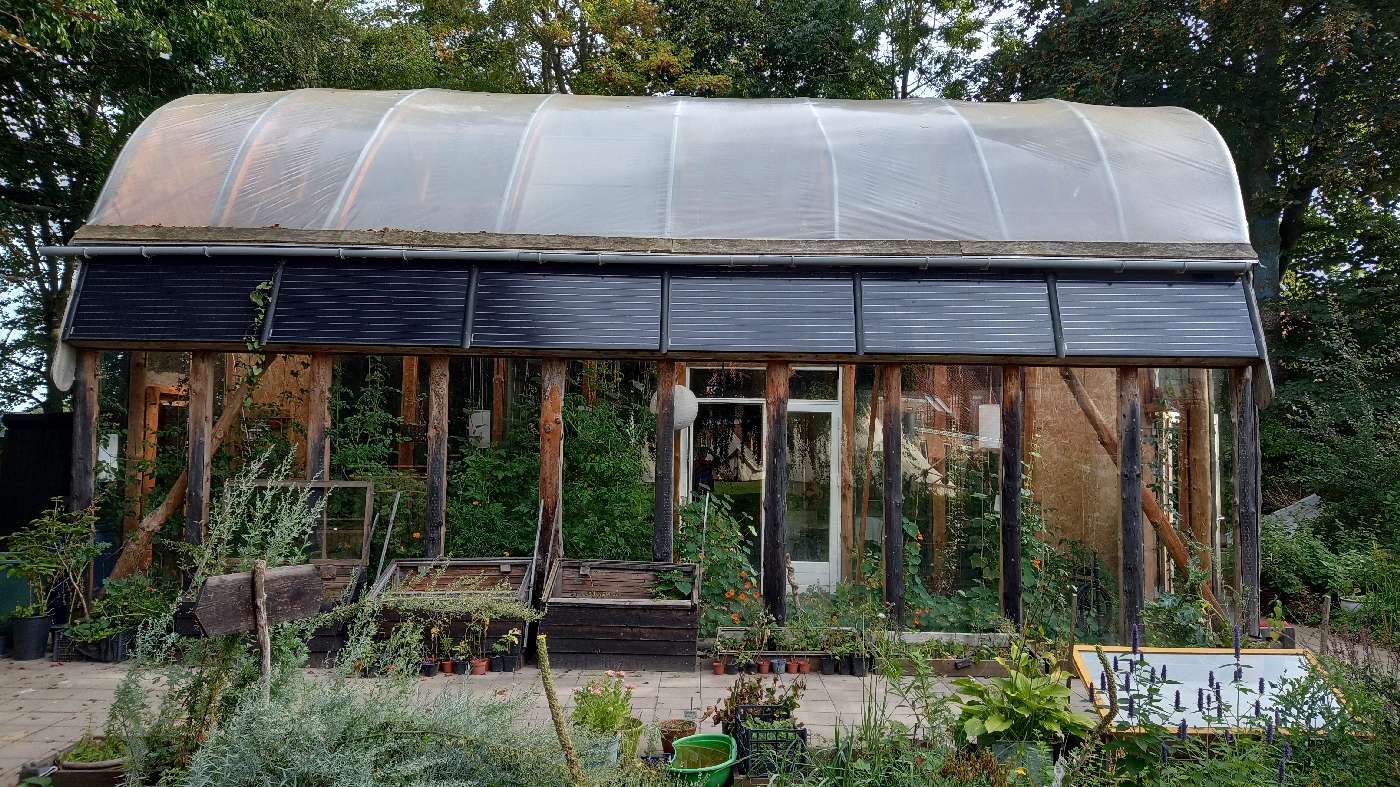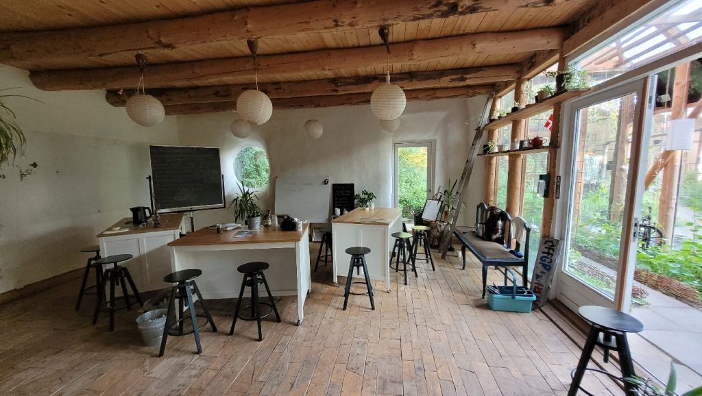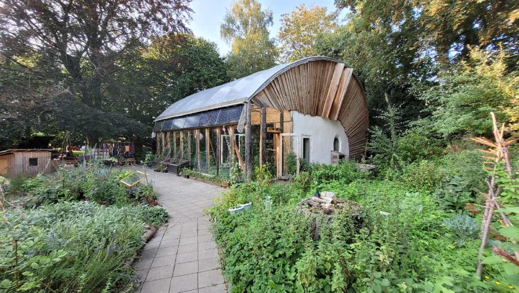 Self-sufficient house with tunnel vault roof made by Steen Møller and students from Brenderup Hojskole, where the house is built. Brenderup Hojskole (with trainer Martin Burlund) was also host for the ESBG (European Straw Building Gathering) 2023, see: https://strawbuilding.eu/esbg/gallery/