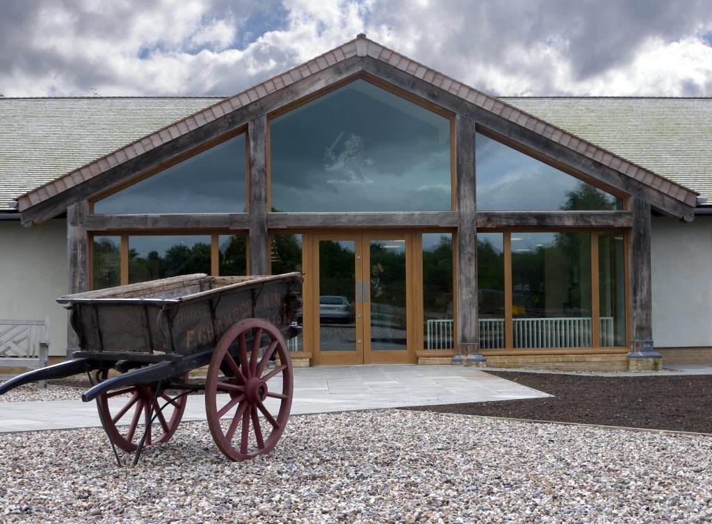 A large commercial building designed for Sworder Ltd, fine art auctioneers, with specialist consultancy from Barbara Jones. It is near Stansted airport, London with an original footprint of 1100m². The building has been so successful for the company that an extension was added in 2009, bringing the overall footprint up to 1600m². The design is from original work by Barbara on a framework system that allows the roof to be constructed first and then lowered to compress the straw (compressive frame). It was built with training courses from amazonails trainers Barbara Jones and Jakub Wihan, and local contractors in 2007. This building has saved the company 75% on annual heating bills compared with their previous premises. The natural material palette comprises strawbale walls, timber frame, lime plaster and render, cedar shingle roof, timber windows and doors. It was built for a very acceptable commercial price of £950 (€1088)/m²